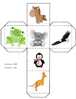Uma criança de cada vez joga o dado e o animal que cair deve